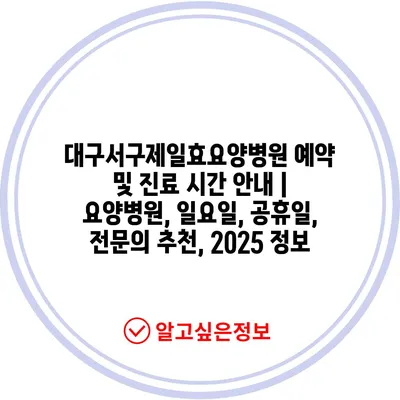 대구서구제일효요양병원 예약 및 진료 시간 공지 | 요양병원, 일요일, 공휴일, 전연락 추천, 2025 정보 에 대해 자주 묻는 질문 TOP 5