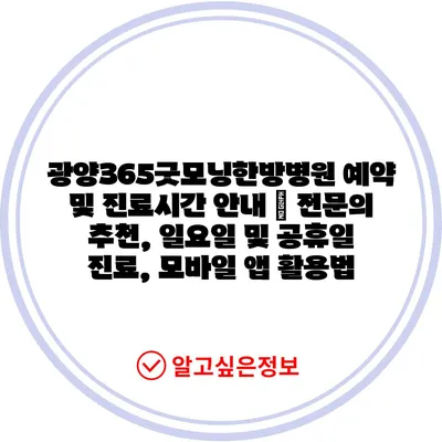 광양365굿모닝한방병원 예약 및 진료시간 공지 | 전연락 추천, 일요일 및 공휴일 진료, 모바일 앱 활용법 에 대해 자주 묻는 질문 TOP 5