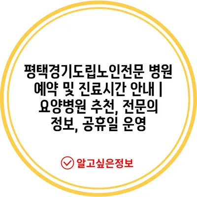 평택경기도립노인전문 병원 예약 및 진료시간 공지 | 요양병원 추천, 전연락 정보, 공휴일 운영 에 대해 자주 묻는 질문 TOP 5