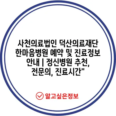 - 덕산의료재단 한마음병원은 사천 지역에서 신뢰받는 정신병원입니다.