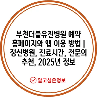 부천더블유진병원 예약 홈페이지와 앱 이용 방법 | 정신병원, 진료시간, 전연락 추천, 2025년 정보 에 대해 자주 묻는 질문 TOP 5