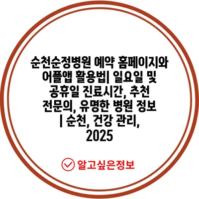 순천순정병원 예약 홈페이지와 어플앱 활용법| 일요일 및 공휴일 진료시간, 추천 전연락, 유명한 병원 정보 | 순천, 건강 관리, 2025 에 대해 자주 묻는 질문 TOP 5