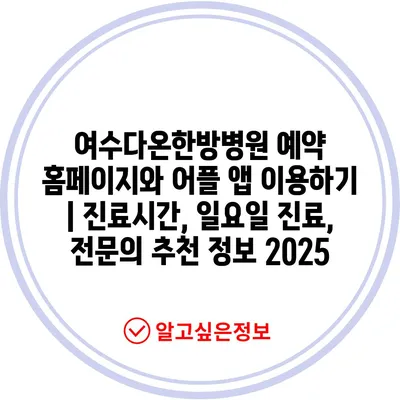 여수다온한방병원 예약 홈페이지와 어플 앱 이용하기 | 진료시간, 일요일 진료, 전연락 추천 정보 2025에 대해 소개합니다.