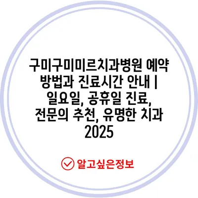 구미구미미르치과병원 예약 방법과 진료시간 안내 | 일요일, 공휴일 진료, 전문의 추천, 유명한 치과 2025