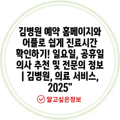김병원 예약 홈페이지와 어플로 쉽게 진료시간 확인하기! 일요일, 공휴일 의사 추천 및 전연락 정보 | 김병원, 의료 서비스, 2025″ 에 대해 자주 묻는 질문 TOP 5