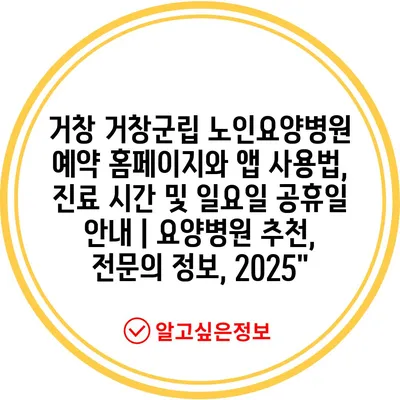 거창 거창군립 노인요양병원 예약 홈페이지와 앱 사용법, 진료 시간 및 일요일 공휴일 공지 | 요양병원 추천, 전연락 정보, 2025 | 자주 묻는 질문 TOP 5