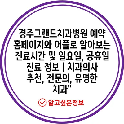 ✅ 경주그랜드치과병원의 진료시간과 예약 방법을 알아보세요.
