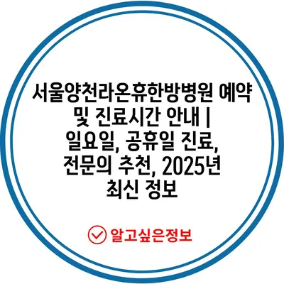 서울양천라온휴한방병원 예약 및 진료시간 공지 | 일요일, 공휴일 진료, 전연락 추천, 2025년 최신 정보 에 대해 자주 묻는 질문 TOP 5
