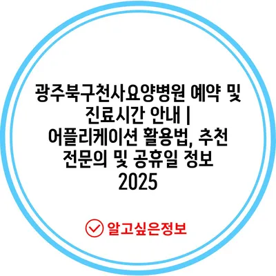 광주북구천사요양병원 예약 및 진료시간 공지 | 어플리케이션 활용법, 추천 전연락 및 공휴일 정보 2025에 대해 소개합니다.