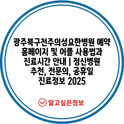 광주북구천주의성요한병원 예약 홈페이지 및 어플 사용법과 진료시간 공지 | 정신병원 추천, 전연락, 공휴일 진료정보 2025 에 대해 자주 묻는 질문 TOP 5