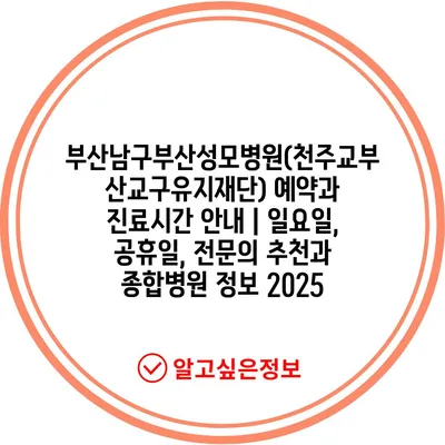 부산남구부산성모병원(천주교부산교구유지재단) 예약과 진료시간 공지 | 일요일, 공휴일, 전연락 추천과 종합병원 정보 2025에 대해 알아보겠습니다.