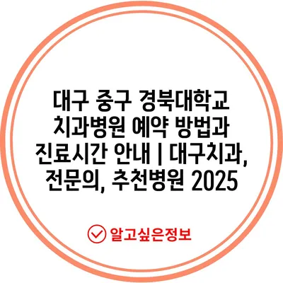 대구 중구 경북대학교 치과병원 예약 방법과 진료시간 공지 | 대구치과, 전연락, 추천병원 2025 에 대해 자주 묻는 질문 TOP 5