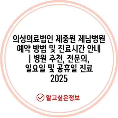 ✅ 제중원 제남병원의 예약 절차와 진료시간을 자세히 알아보세요.