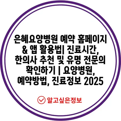 은혜요양병원 예약 홈페이지 & 앱 활용법| 진료시간, 한의사 추천 및 유명 전연락 확인하기 | 요양병원, 예약방법, 진료정보 2025에 대해 알아보겠습니다.