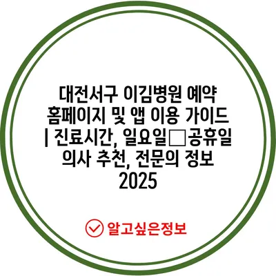 ✅ 대전서구 이김병원 예약 방법과 팁을 알아보세요.