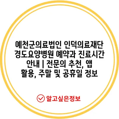예천군의료법인 인덕의료재단 경도요양병원 예약과 진료시간 공지 | 전연락 추천, 앱 활용, 주말 및 공휴일 정보 에 대해 자주 묻는 질문 TOP 5