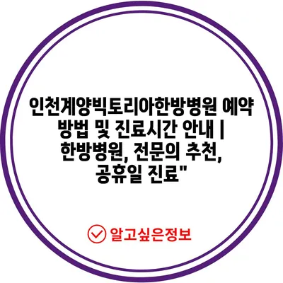 ✅ 인천계양빅토리아한방병원의 예약 방법과 팁을 자세히 알아보세요.