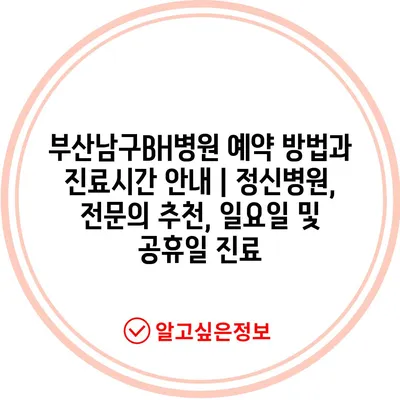 ✅ 부산남구BH병원의 진료시간과 예약 방법을 자세히 알아보세요.