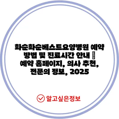 화순화순베스트요양병원 예약 방법 및 진료시간 공지 | 예약 홈페이지, 의사 추천, 전연락 정보, 2025 에 대해 자주 묻는 질문 TOP 5