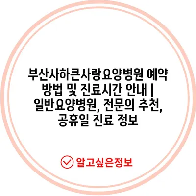 부산사하큰사랑요양병원 예약 방법 및 진료시간 공지 | 일반요양병원, 전연락 추천, 공휴일 진료 정보 에 대해 자주 묻는 질문 TOP 5