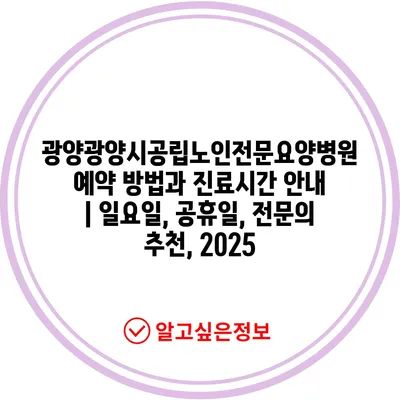 광양광양시공립노인전문요양병원 예약 방법과 진료시간 공지 | 일요일, 공휴일, 전연락 추천, 2025에 대해 자주 묻는 질문 TOP 5