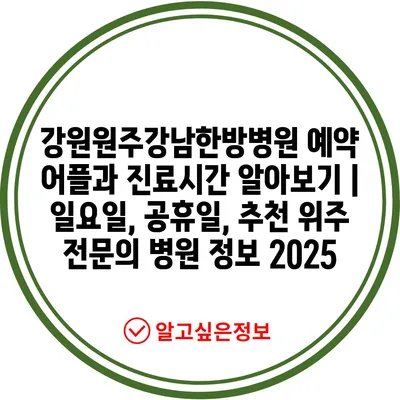 강원원주강남한방병원 예약 어플과 진료시간 알아보기 | 일요일, 공휴일, 추천 위주 전연락 병원 정보 2025 에 대해 자주 묻는 질문 TOP 5