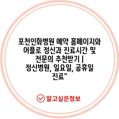 포천인화병원 예약 홈페이지와 어플로 정신과 진료시간 및 전연락 추천받기 | 정신병원, 일요일, 공휴일 진료”에 대해 자주 묻는 질문 TOP 5