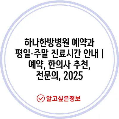 하나한방병원 예약과 평일·주말 진료시간 공지 | 예약, 한의사 추천, 전연락, 2025