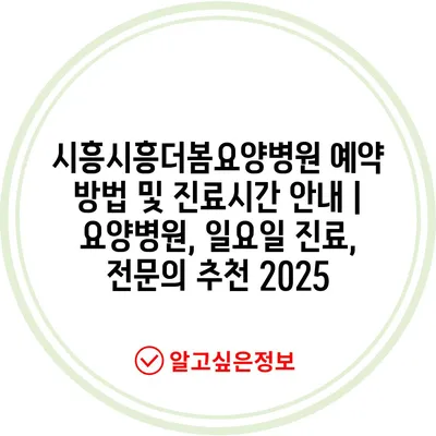 시흥시흥더봄요양병원 예약 방법 및 진료시간 공지 | 요양병원, 일요일 진료, 전연락 추천 2025 에 대해 자주 묻는 질문 TOP 5