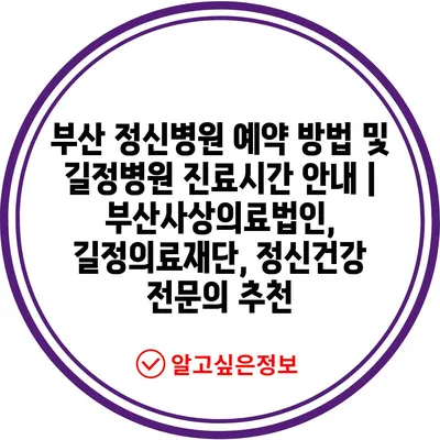부산 정신병원 예약 방법 및 길정병원 진료시간 공지 | 부산사상의료법인, 길정의료재단, 정신건강 전연락 추천 에 대해 자주 묻는 질문 TOP 5