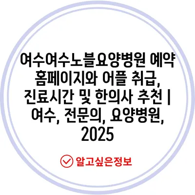 ✅ 여수여수노블요양병원 예약 및 진료시간을 확인해보세요!