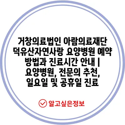 거창의료법인 아람의료재단 덕유산자연사랑 요양병원 예약 방법과 진료시간 안내 | 요양병원, 전문의 추천, 일요일 및 공휴일 진료