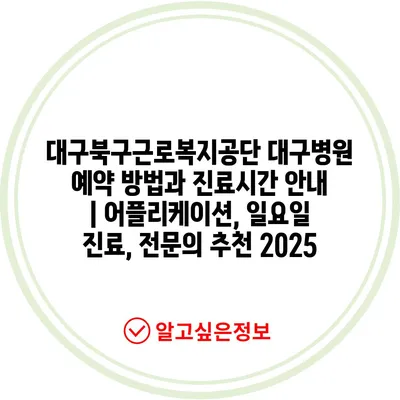 대구북구근로복지공단 대구병원 예약 방법과 진료시간 공지 | 어플리케이션, 일요일 진료, 전연락 추천 2025에 대해 알아보겠습니다.