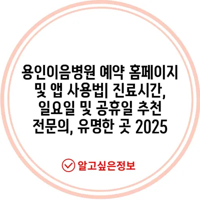 용인이음병원 예약 홈페이지 및 앱 사용법| 진료시간, 일요일 및 공휴일 추천 전연락, 유명한 곳 2025에 대해 소개합니다.