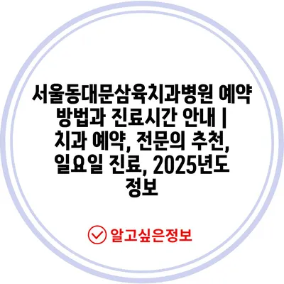 서울동대문삼육치과병원 예약 방법과 진료시간 안내 | 치과 예약, 전문의 추천, 일요일 진료, 2025년도 정보