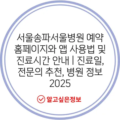 ✅ 서울송파서울병원의 진료시간과 예약 방법을 알아보세요!