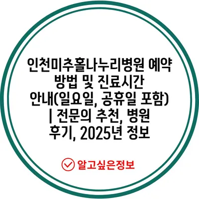 인천미추홀나누리병원 예약 방법 및 진료시간 공지(일요일, 공휴일 포함) | 전연락 추천, 병원 후기, 2025년 정보 에 대해 자주 묻는 질문 TOP 5