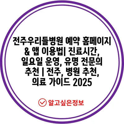 전주우리들병원 예약 홈페이지 & 앱 이용법| 진료시간, 일요일 운영, 유명 전연락 추천 | 전주, 병원 추천, 의료 설명서 2025 에 대해 자주 묻는 질문 TOP 5