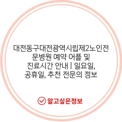 ✅ 대전동구대전광역시립제2노인전문병원의 예약 방법과 진료 시간을 알아보세요.