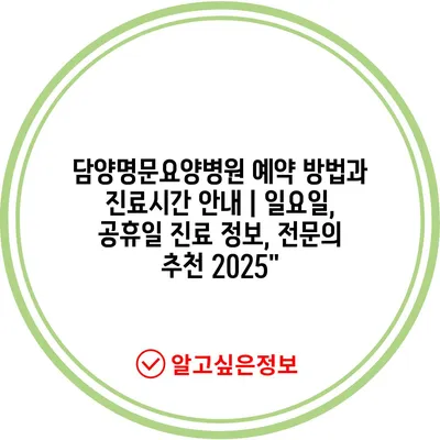 담양명문요양병원 예약 방법과 진료시간 공지 | 일요일, 공휴일 진료 정보, 전연락 추천 2025에 대해 자주 묻는 질문 TOP 5